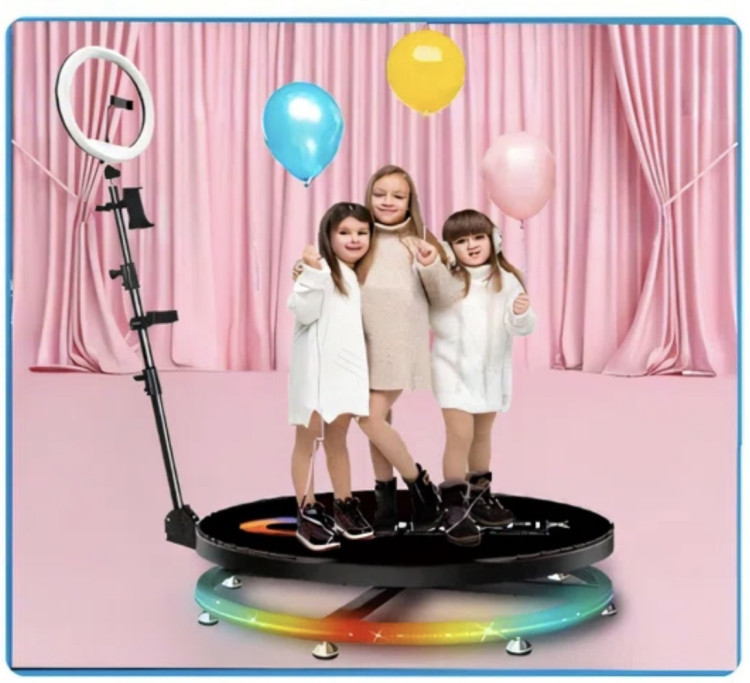 Capture every moment in stunning slow-motion with our large 45-inch 360° Pro Booth! Fits up to 7 guests, features LED lighting, instant video sharing, and includes a professional attendant — perfect for weddings, parties, and corporate events.
